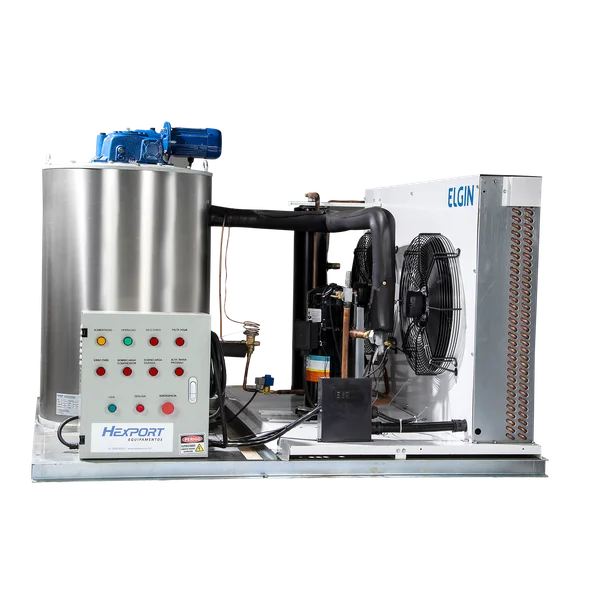 Máquinas de gelo Hexport: sistema fresa moderno, controle por CLP, alta produção e baixo consumo. Ideal para diversos segmentos. Até 3000kg/dia de gelo escama.